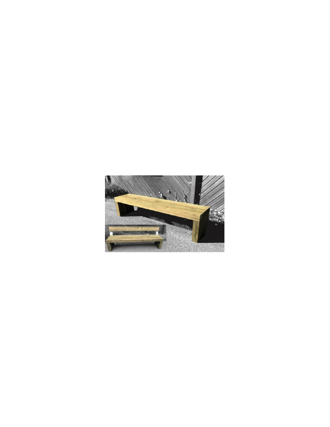 Fabrication française - banquette en pin classe 4 - Boulonnerie inox - Scellement direct - Assise et piétement en pin classe 4 section 100 x 100 mm - Option: dossier en pin Dim: 2000 x 600 x 450 mm