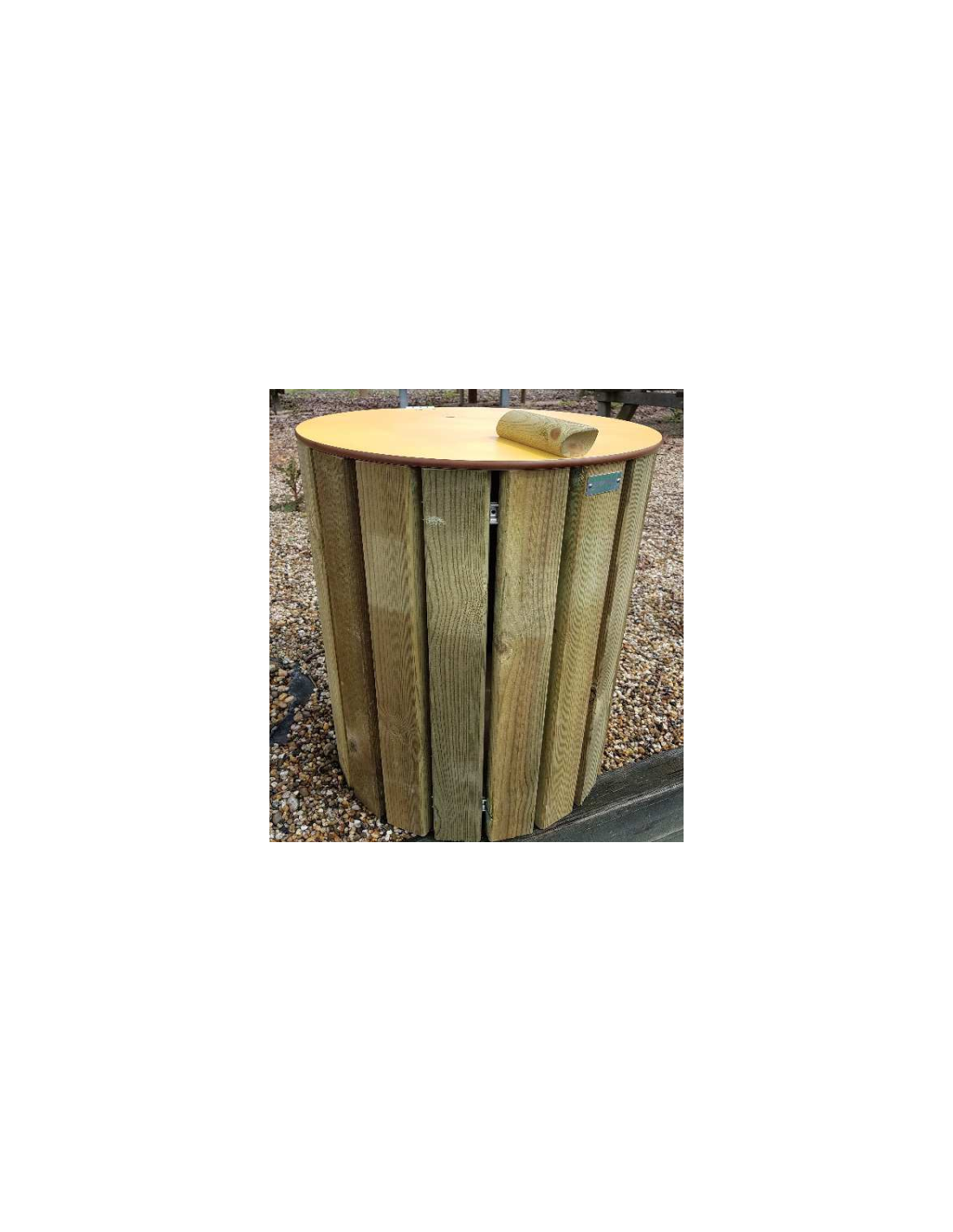 Fabrication française - Structure acier et couvercle HPL 10 mm sur charnière - Contenance : 50L - Fond de la corbeille avec plaque CTBX Diam : 470 x Hauteur : 600 mm - Poids : 15 Kg