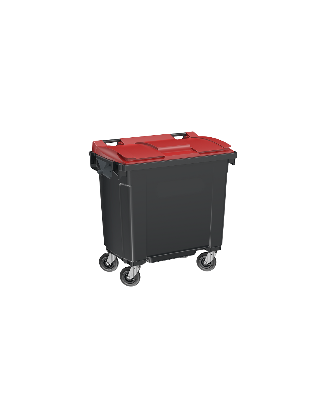 Bac 770L PEHD injecté résistant aux chocs - Normes EN 840 de 1 à 6 - Préhension frontale et latérale - Roues 160 mm dont 2 freinées - Fabrication Française