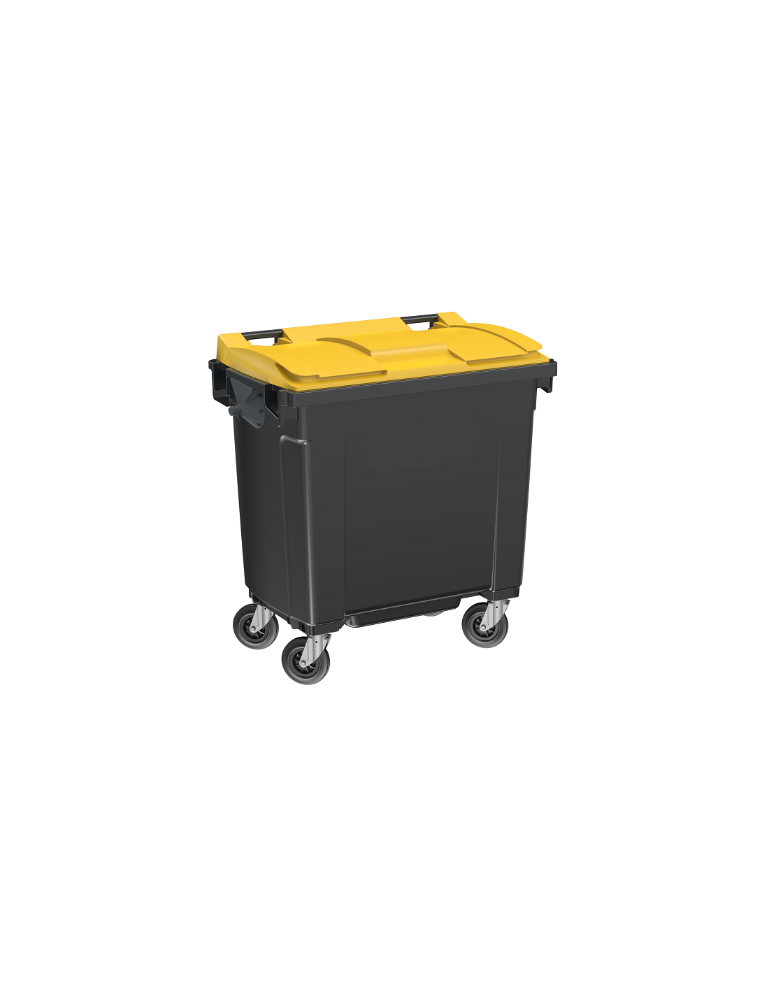 Bac 770L PEHD injecté résistant aux chocs - Normes EN 840 de 1 à 6 - Préhension frontale et latérale - Roues 160 mm dont 2 freinées - Fabrication Française