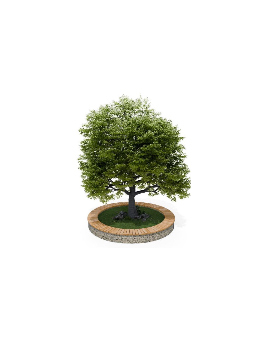 Entourage en gabion rond - Structure et fixation en acier galvanisé à chaud - Maille 10x5cm - Fil d'acier ø 4.5 mm galva crapal primium - Assise bois en Pin traité classe 4 + système fixation pré fixé - Cage livrée montée et sans matériaux de remplissage - Option : Assise bois en Cèdre