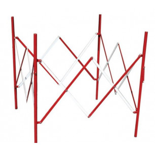 Zone de passage en aluminium antidérapant - Garde-corps réalisés avec des barrières articulées repliables - Munis de crochets - Finition garde-corps laqués rouge et réflectos blanc - Limite d`utilisation : 300 Kg