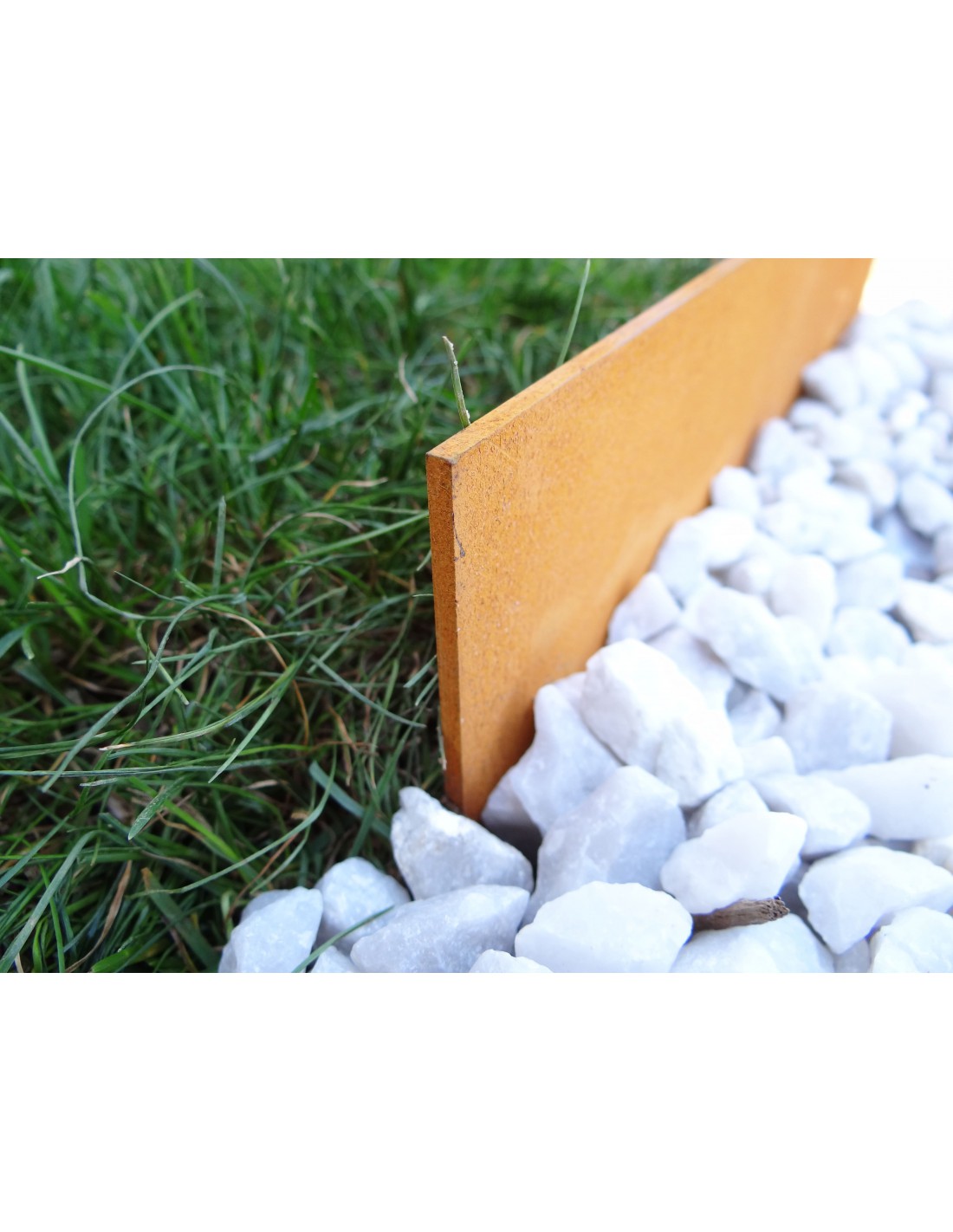 Volige excellence acier corten Auto patinant 15/10 eme - Pli anti coupure - 3 Pieux plats de fixation en acier corten 390 x 37 x 3 mm - Adapté au gazon / gravier / sable / terre / pavé - Condtionnement par 5 u Obligatoire - Fabriqué en France - Non vieilli à la livraison